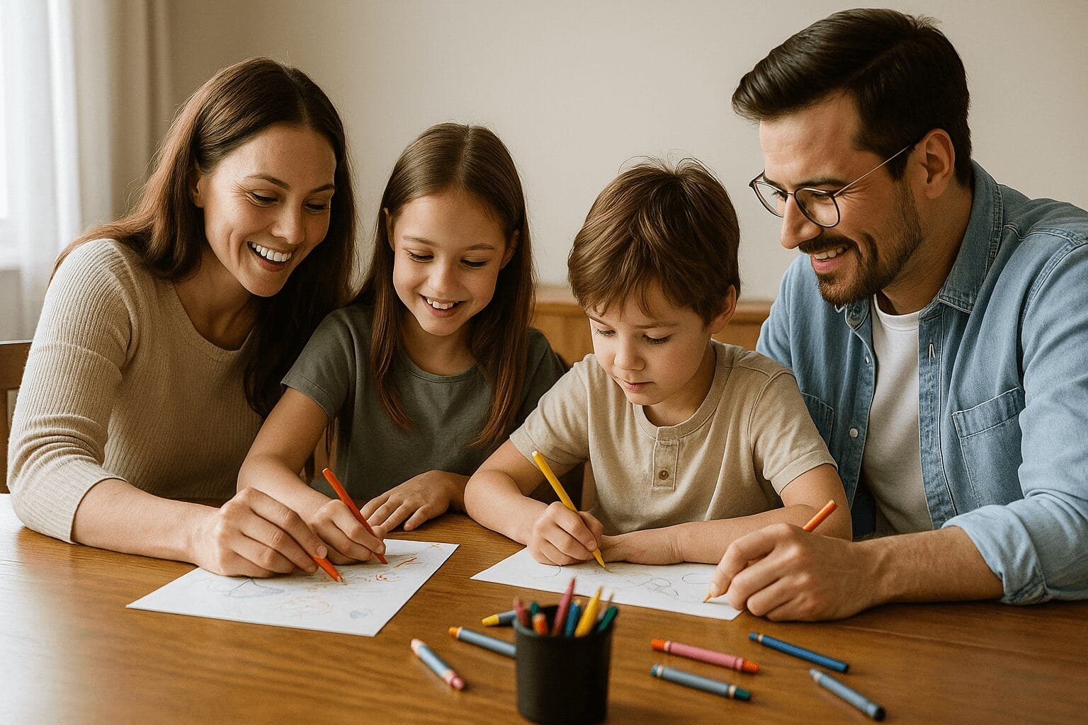 Ein Malritual lebt davon, dass alle mitmachen – auch die Erwachsenen. Wenn Mama oder Papa ebenfalls zum Stift greifen, verändert sich die Dynamik. Kinder spüren: Hier geht es nicht um Kontrolle, sondern um gemeinsames Erleben. Alle sitzen am Tisch. Alle malen. Jeder auf seine Weise.